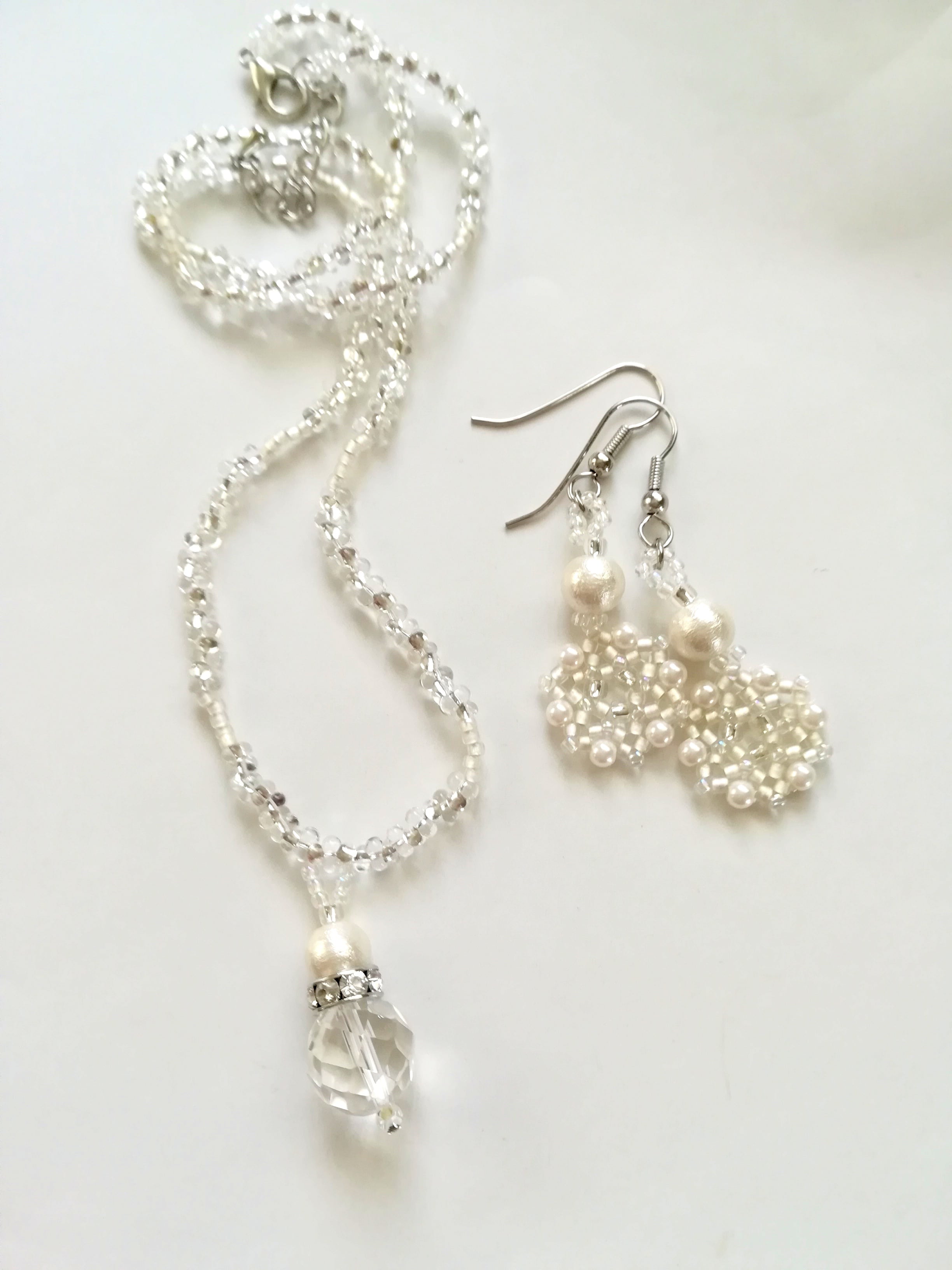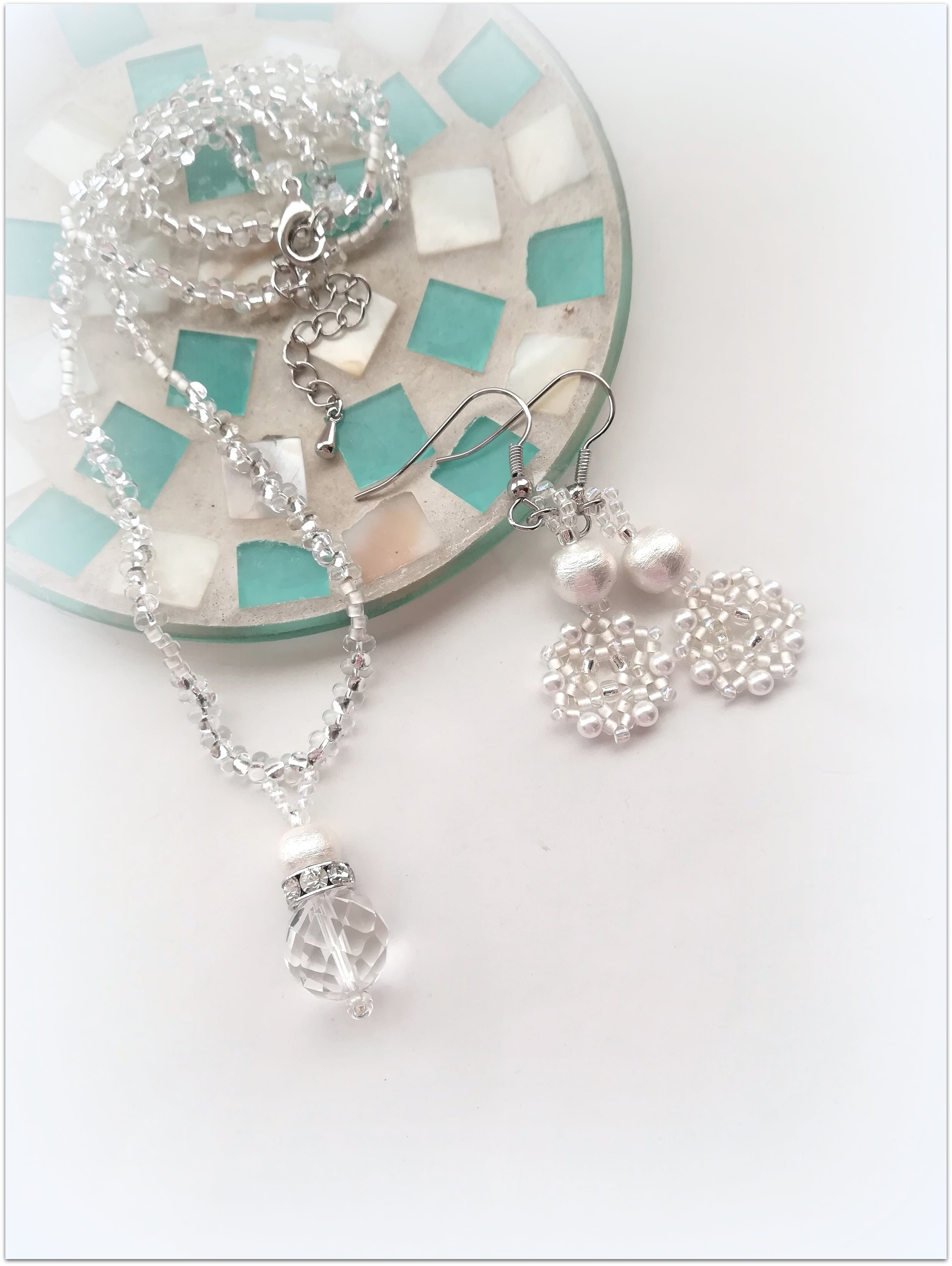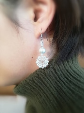ピアスは、ビーズステッチで編み上げた『 雪の結晶モチーフ 』と