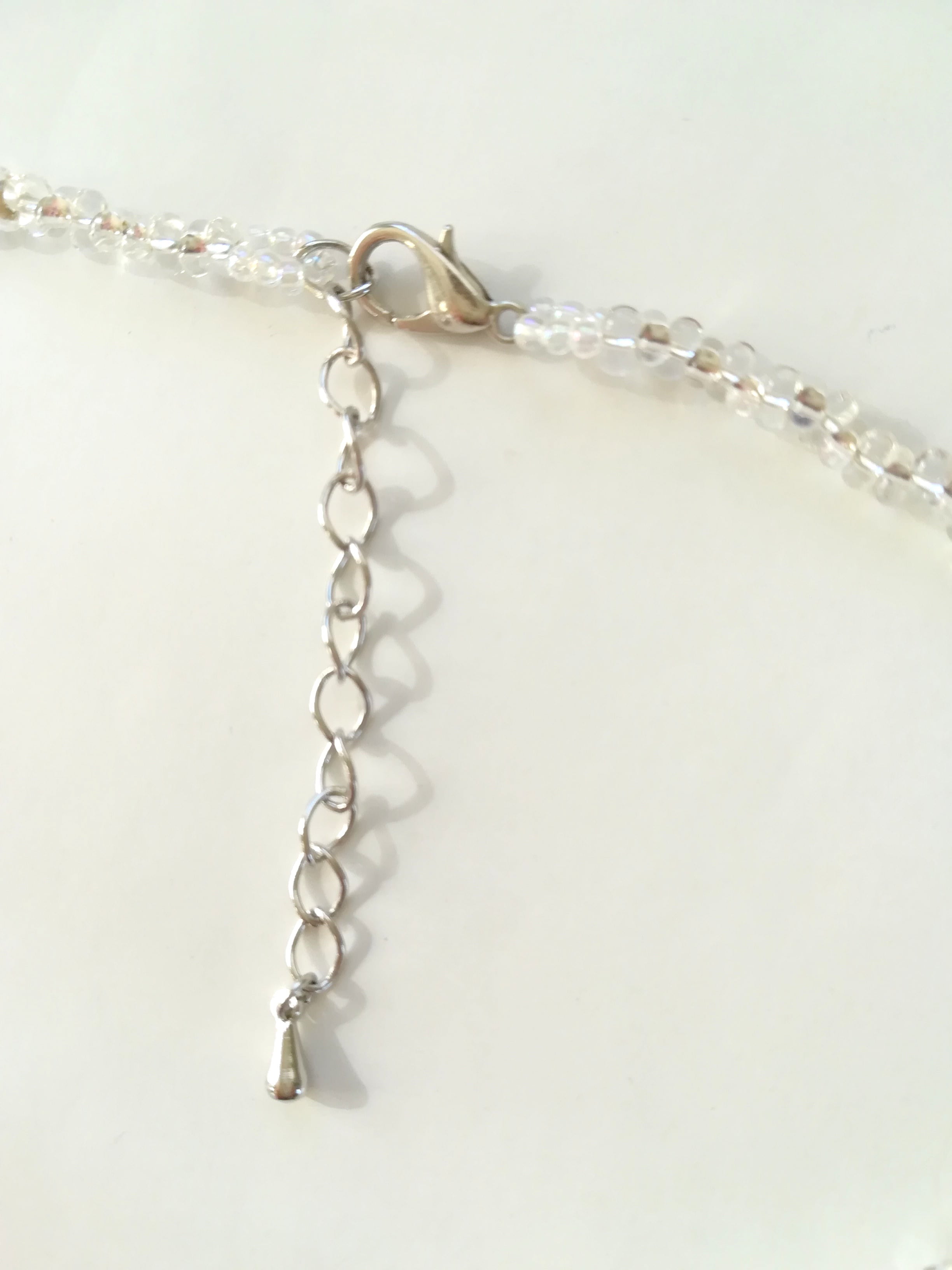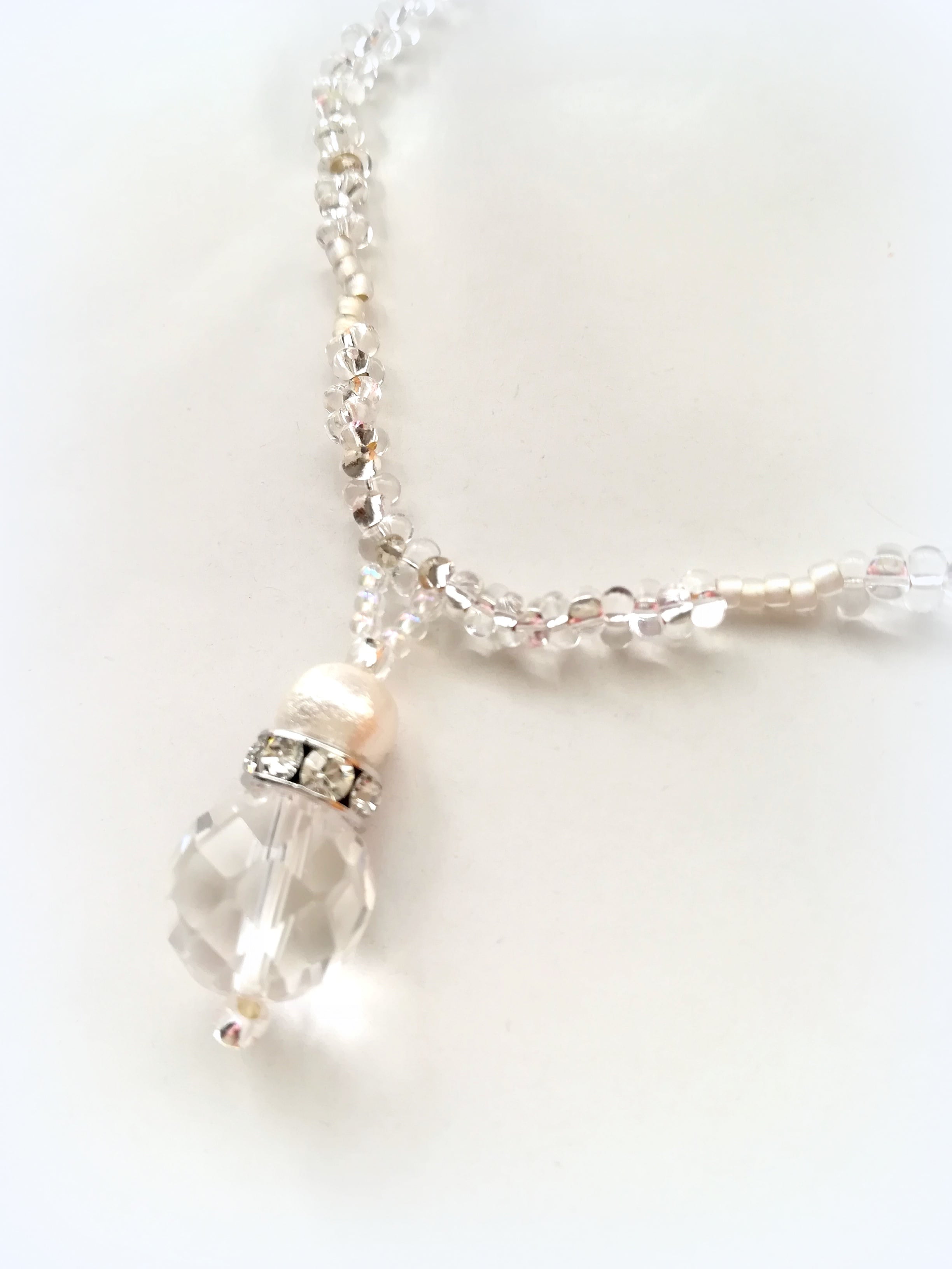 ネックレストップには、カットの美しい12㎜の水晶が輝きます。