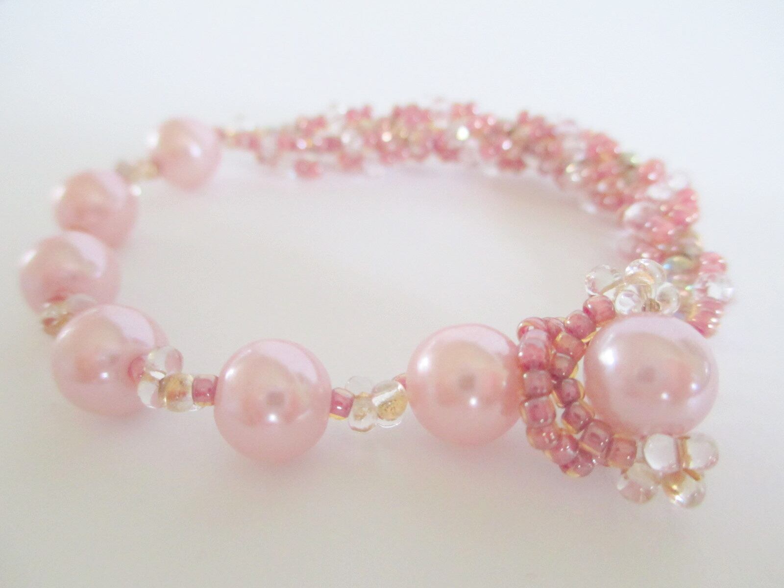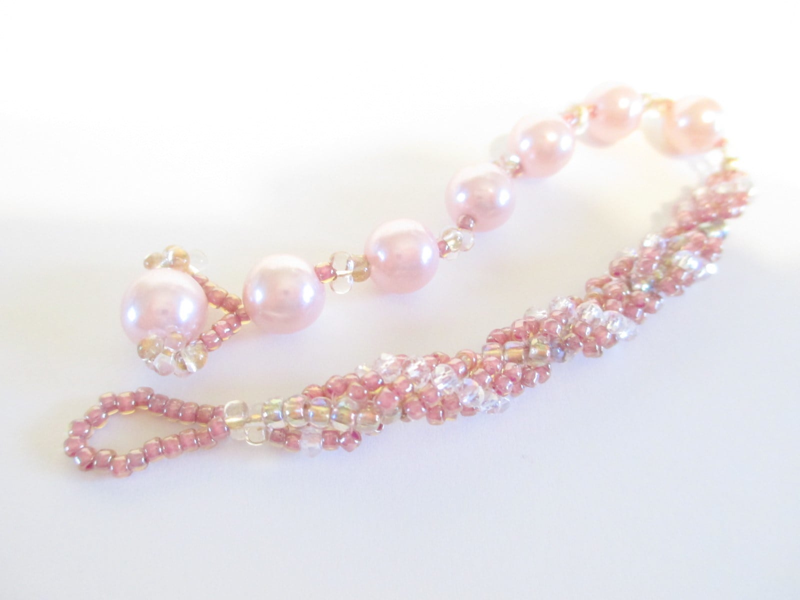 シードビーズのスパイラルと樹脂パールの(8㎜)ストリングを