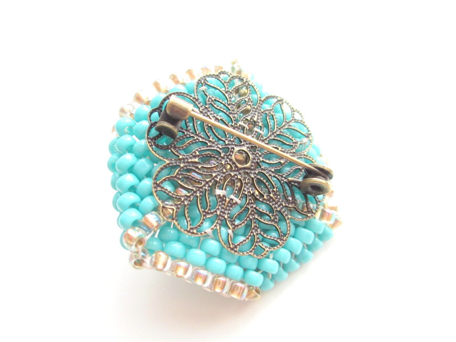 ペヨーテステッチで編んだリボンを六角形に折りたたみ、