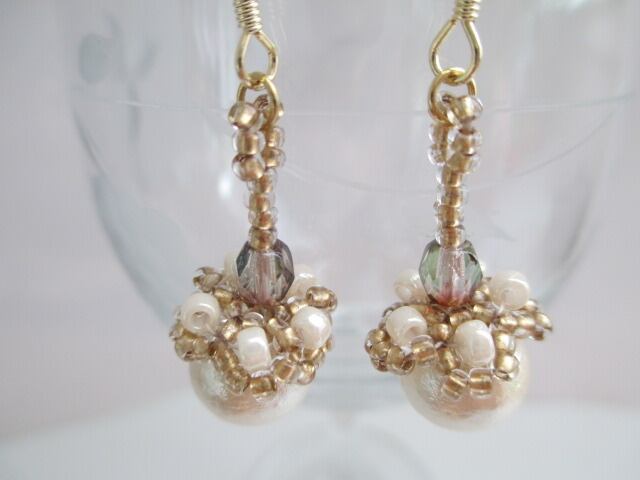 *ピアスも、金ラインの丸小ビーズでレース風に編み上げ、チェコビーズをトップに華やかなピアスとなっております。