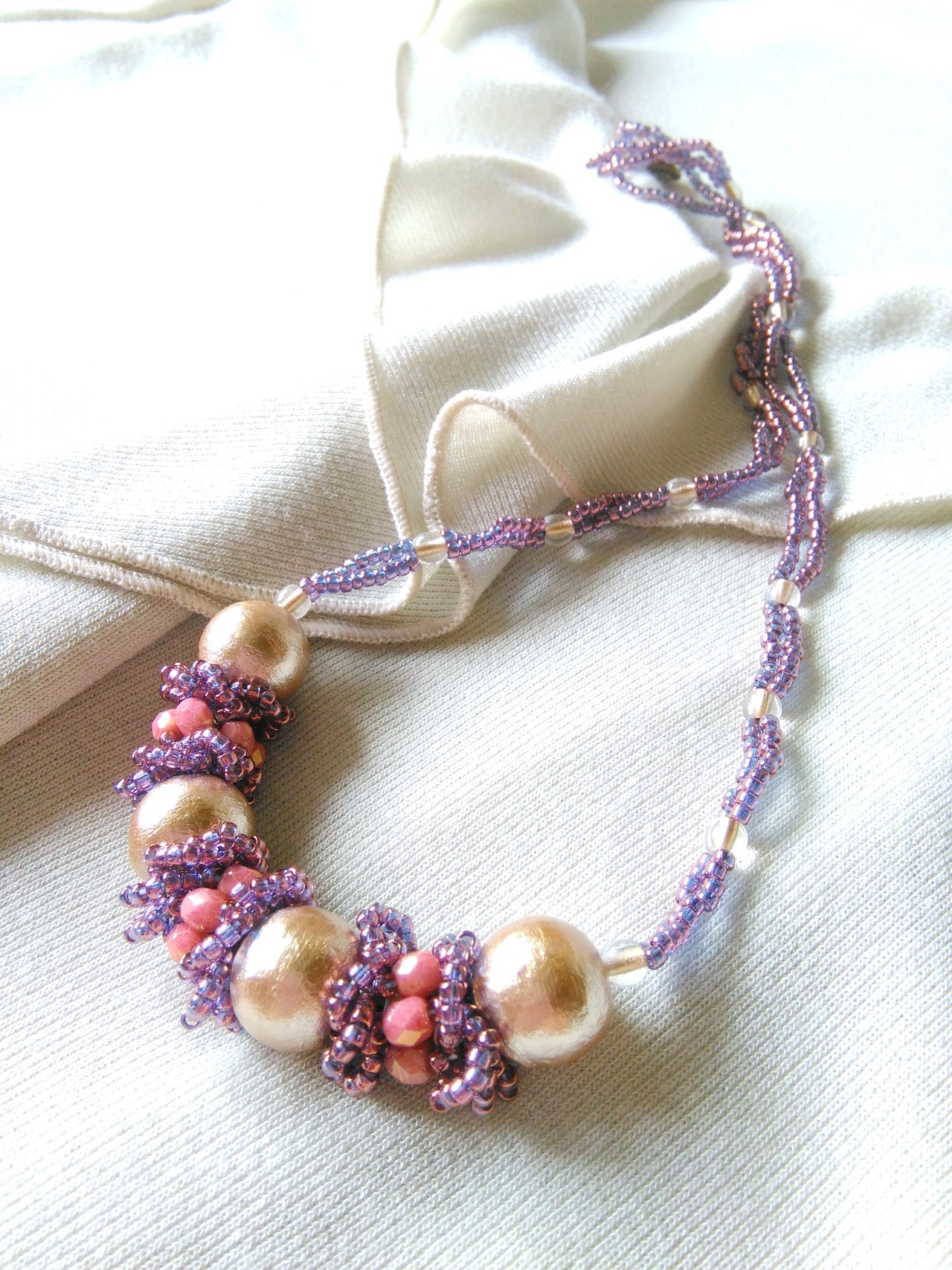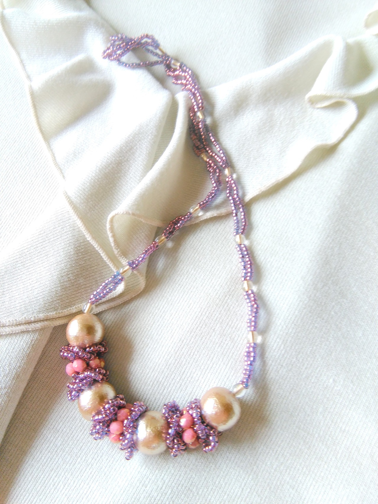 とっても軽いゴールドの大粒コットンパール(12㎜)と合わせて、