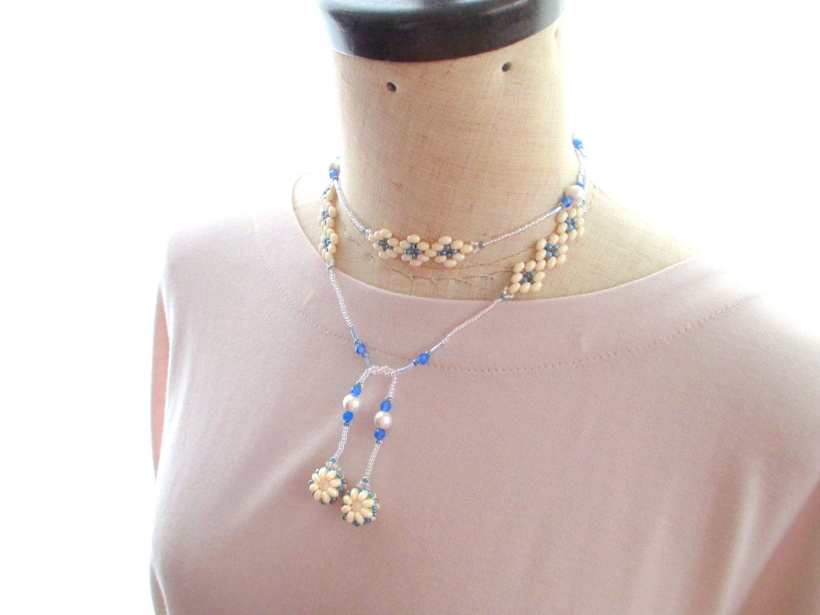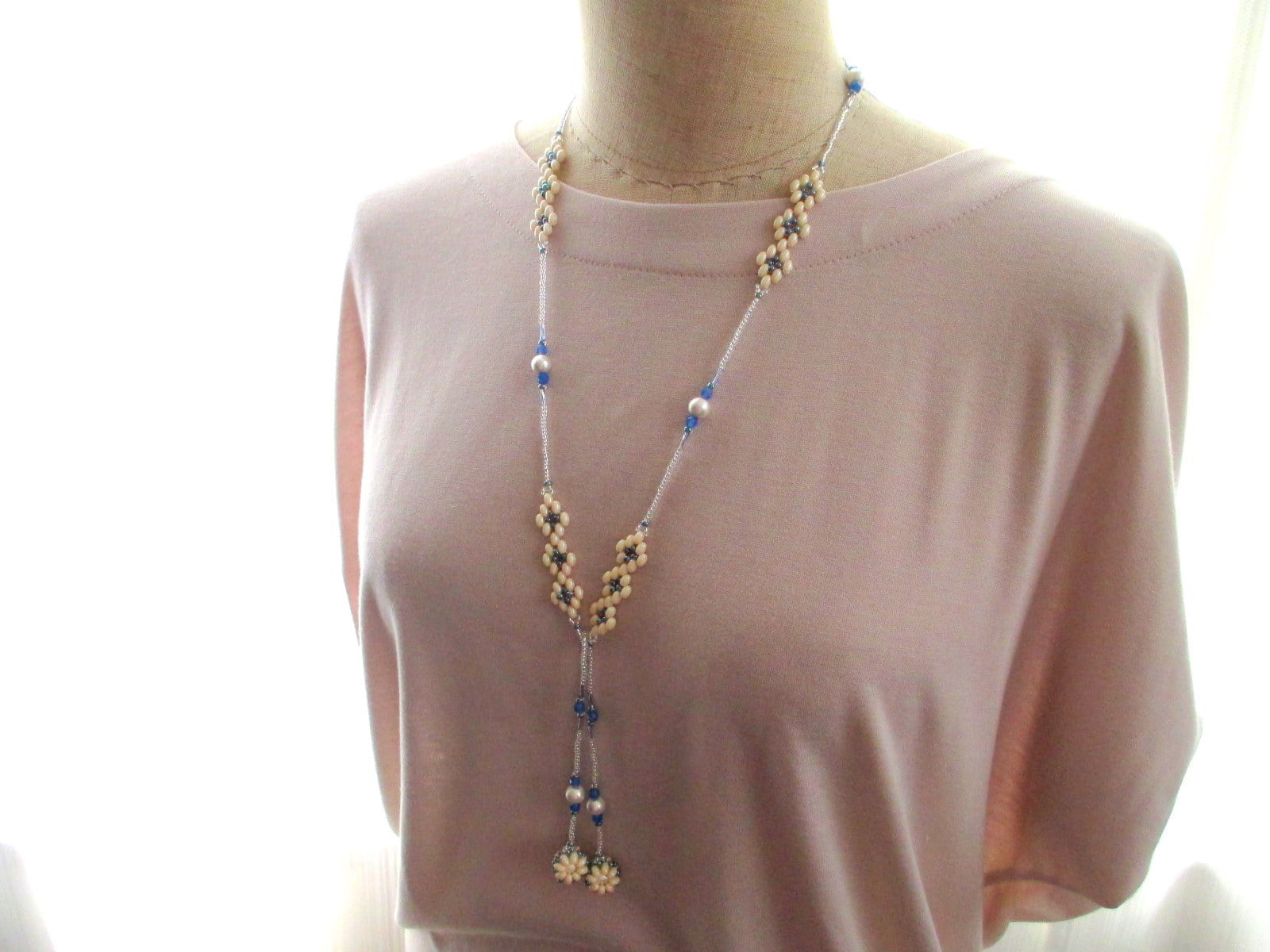 2ホールビーズでシンプルなラリエットに仕上げました。