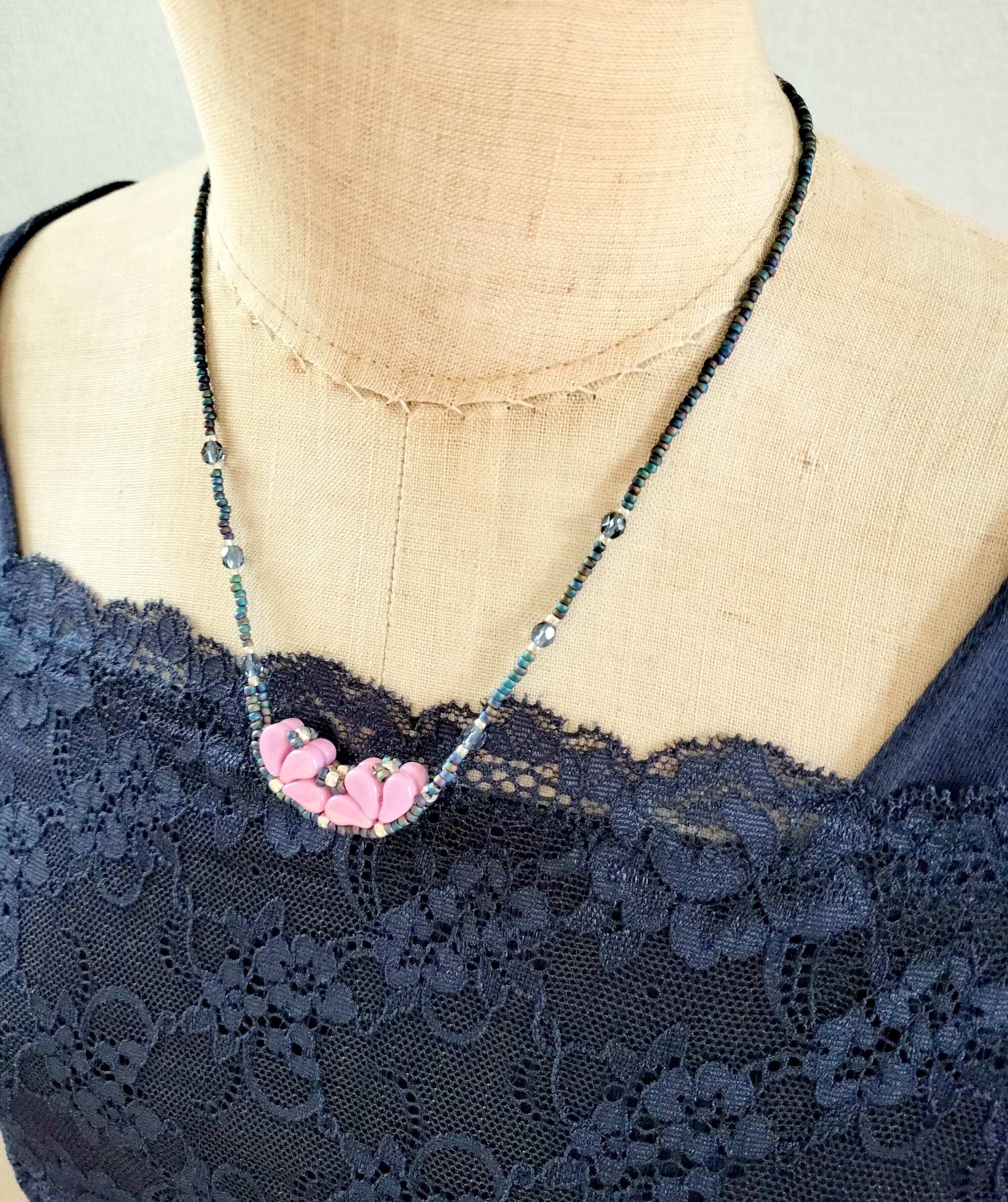 ペイズリーの形を組み合わせ、お花にもハートにも