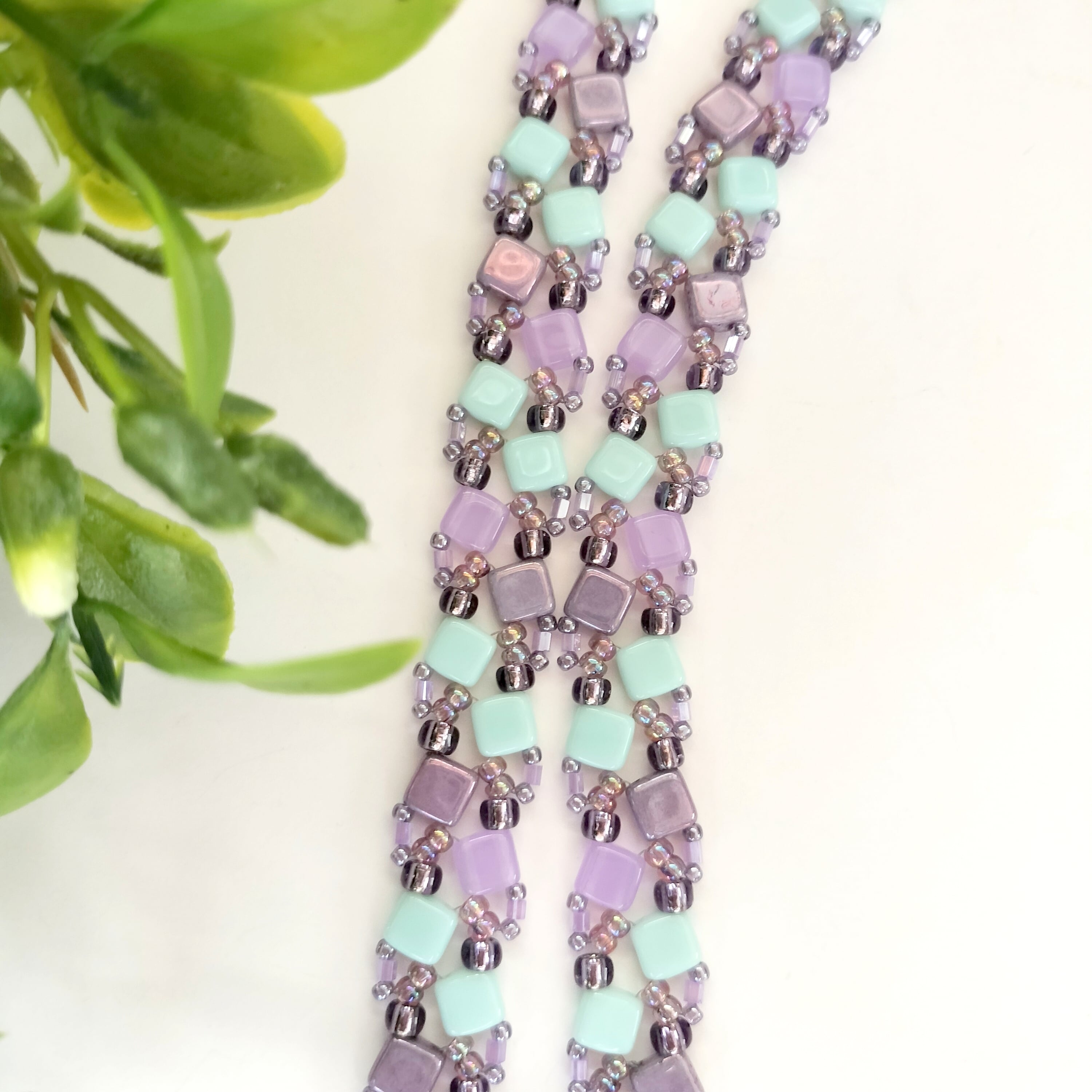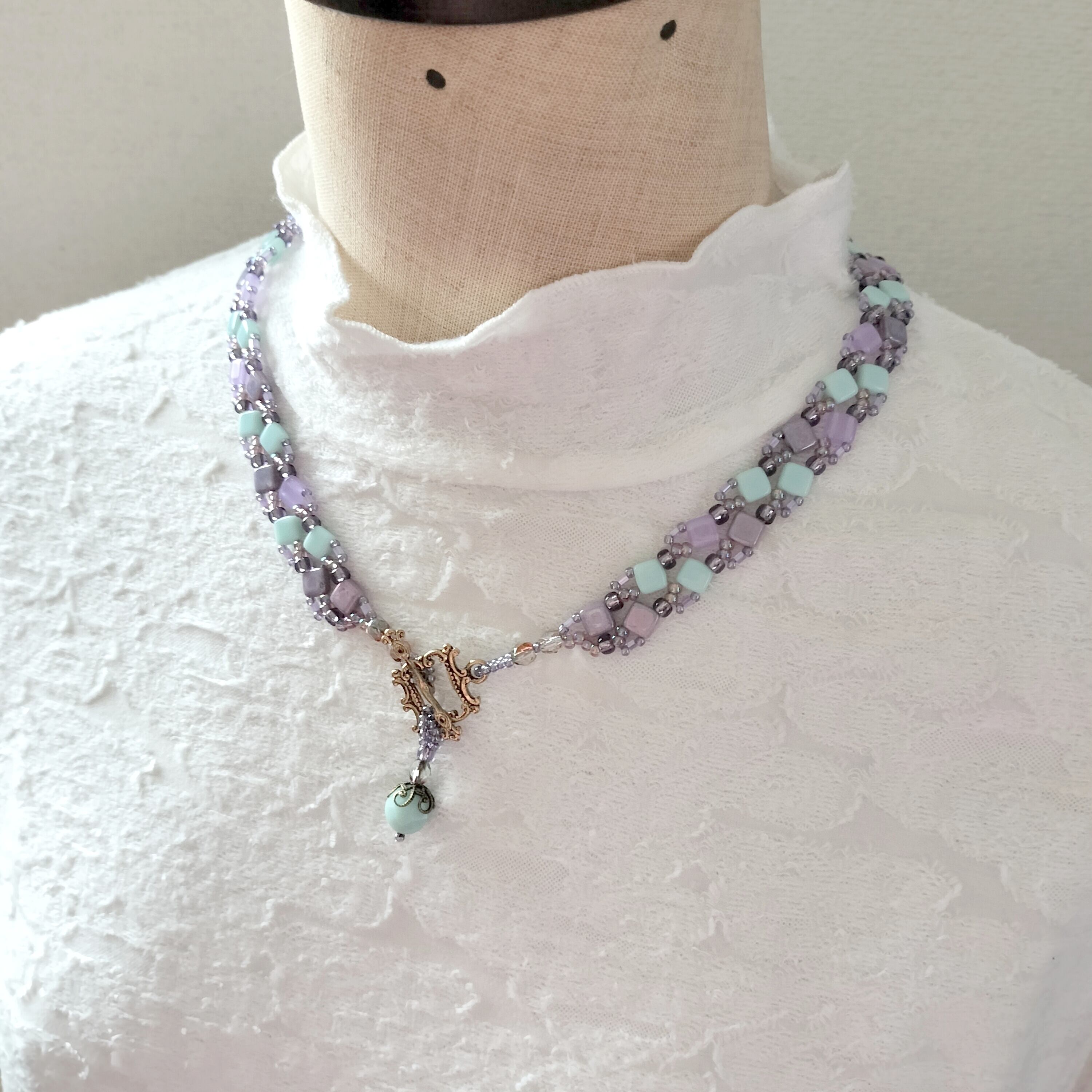 スクエアー2ホールビーズを使い、斜めのラインがお洒落な