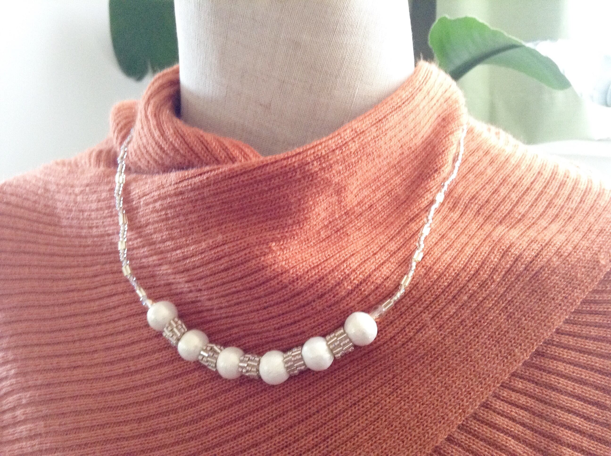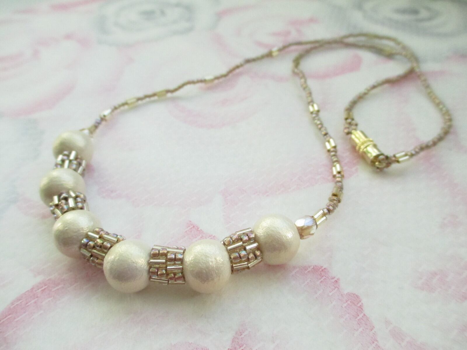 ジュエリーを思わせる大人のコットンパールネックレスです。